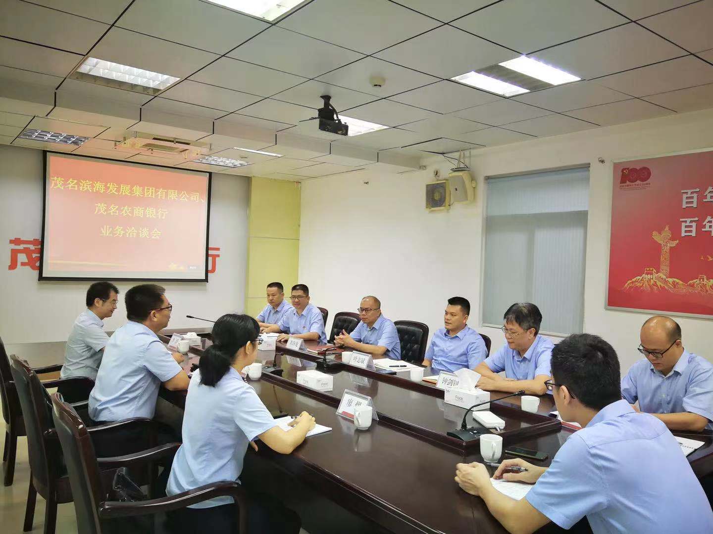7月19日上午,茂名濱海發(fā)展集團(tuán)黨委書記、董事長黃遠(yuǎn)維帶隊(duì)拜訪茂名農(nóng)商銀行,雙方就項(xiàng)目融資、產(chǎn)業(yè)合作等有關(guān)事宜進(jìn)行洽談,并達(dá)成合作意向。茂名農(nóng)商銀行行長葉志斌,副行長鐘劍釗、朱海龍;茂名濱海發(fā)展集團(tuán)黨委委員、副總裁李滔等參加座談會(huì)。