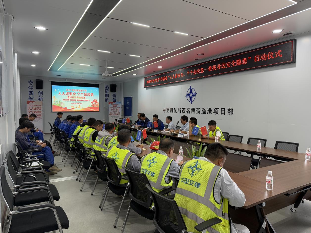 緊扣 “人人講安全、個個會應急 —— 查找身邊安全隱患”的年度安全生產月主題,5 月 29 日下午,茂名濱海發展集團下屬子公司——茂名博賀漁港園區投資有限公司(以下簡稱“園區公司”)攜手監理、施工單位組織舉辦了2025年安全生產月活動啟動儀式,共同拉開了安全生產月系列活動的序幕。此次啟動儀式旨在凝聚各方力量,動員全體項目人員主動參與安全生產實踐,切實提升安全防范意識與應急處置能力。