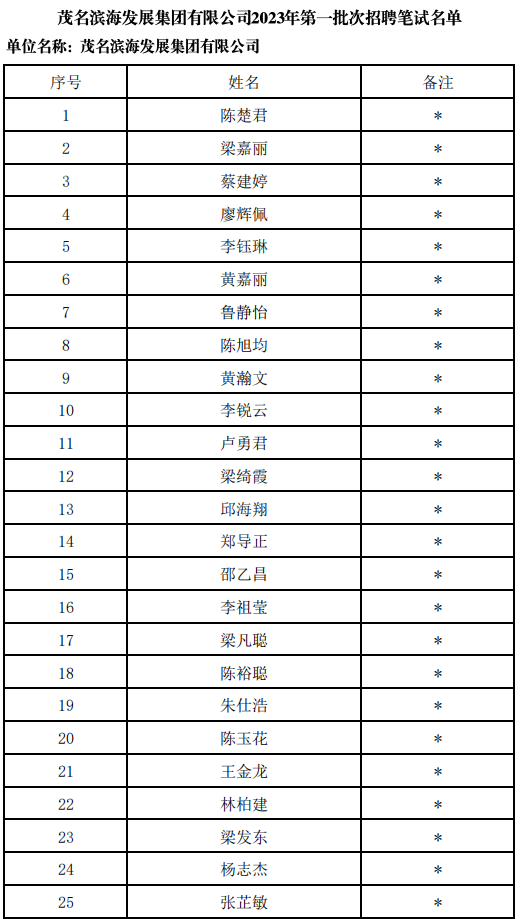茂名濱海發(fā)展集團(tuán)有限公司2023年第二批次招聘公告